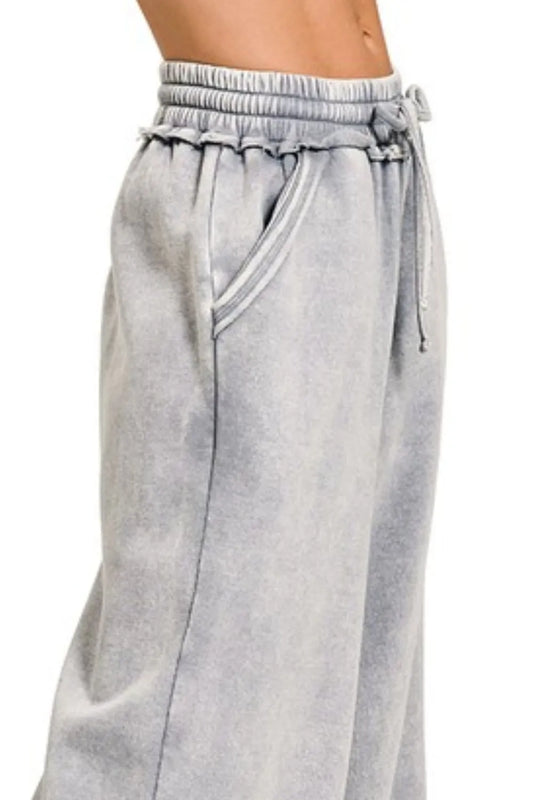 Acid Wash Fleece Palazzo Sweatpants with Pockets